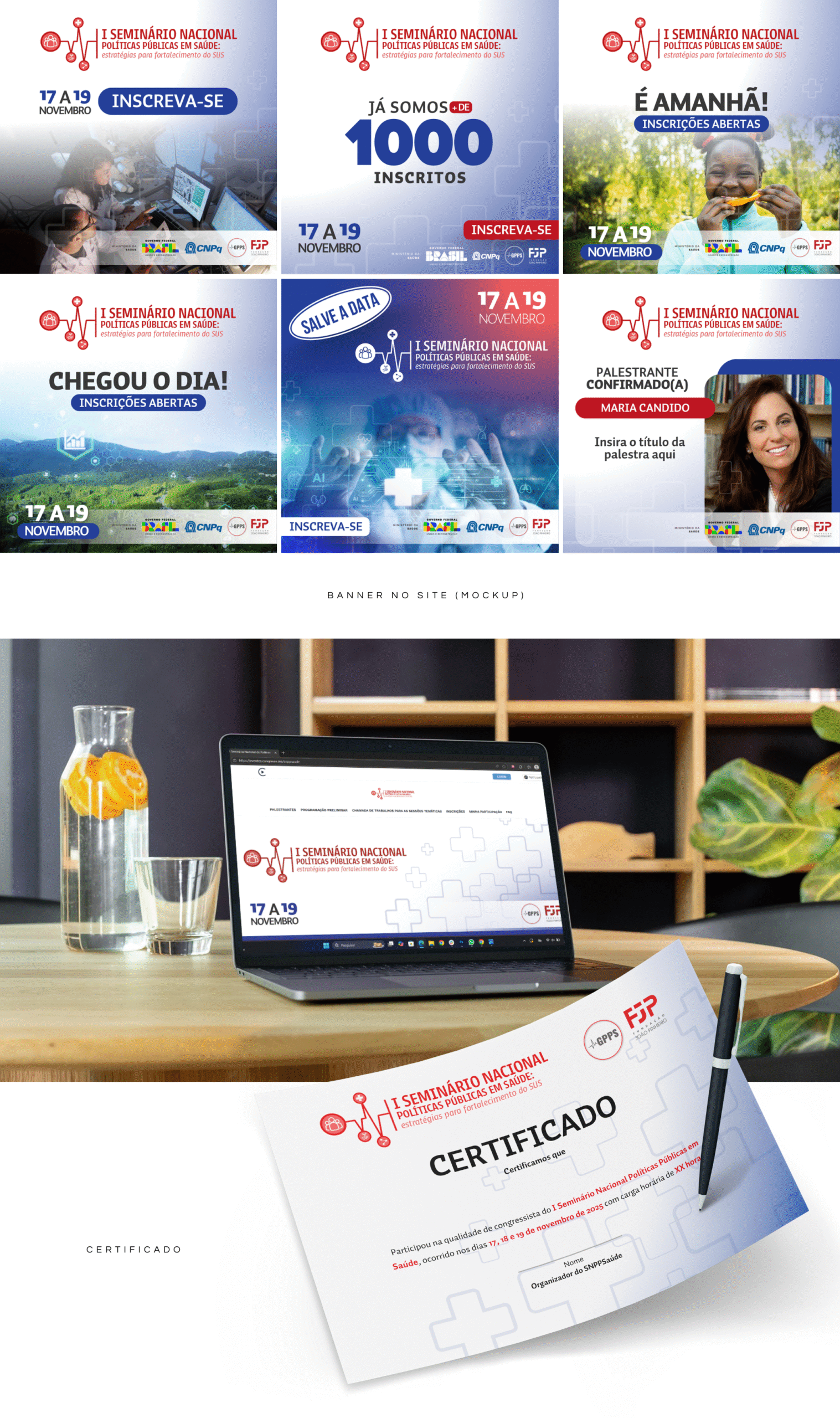Confira nesta página a Identidade Visual do I Seminário Nacional de Políticas Públicas em Saúde: Estratégias para o Fortalecimento do SUS.